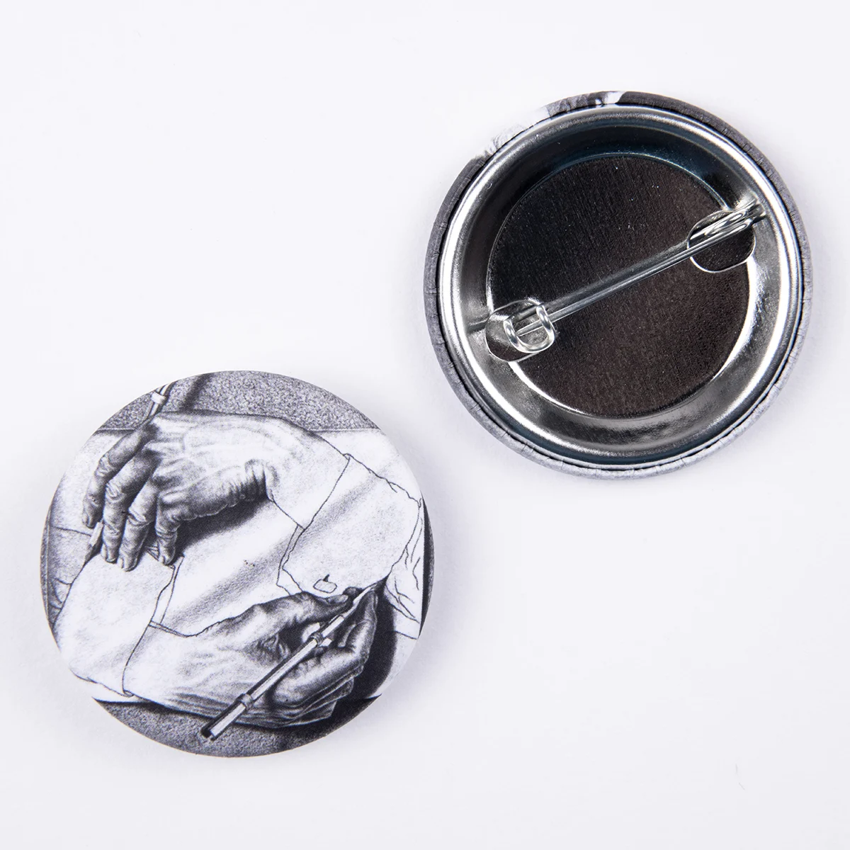 PIN WITH PACK DRAWING HANDS