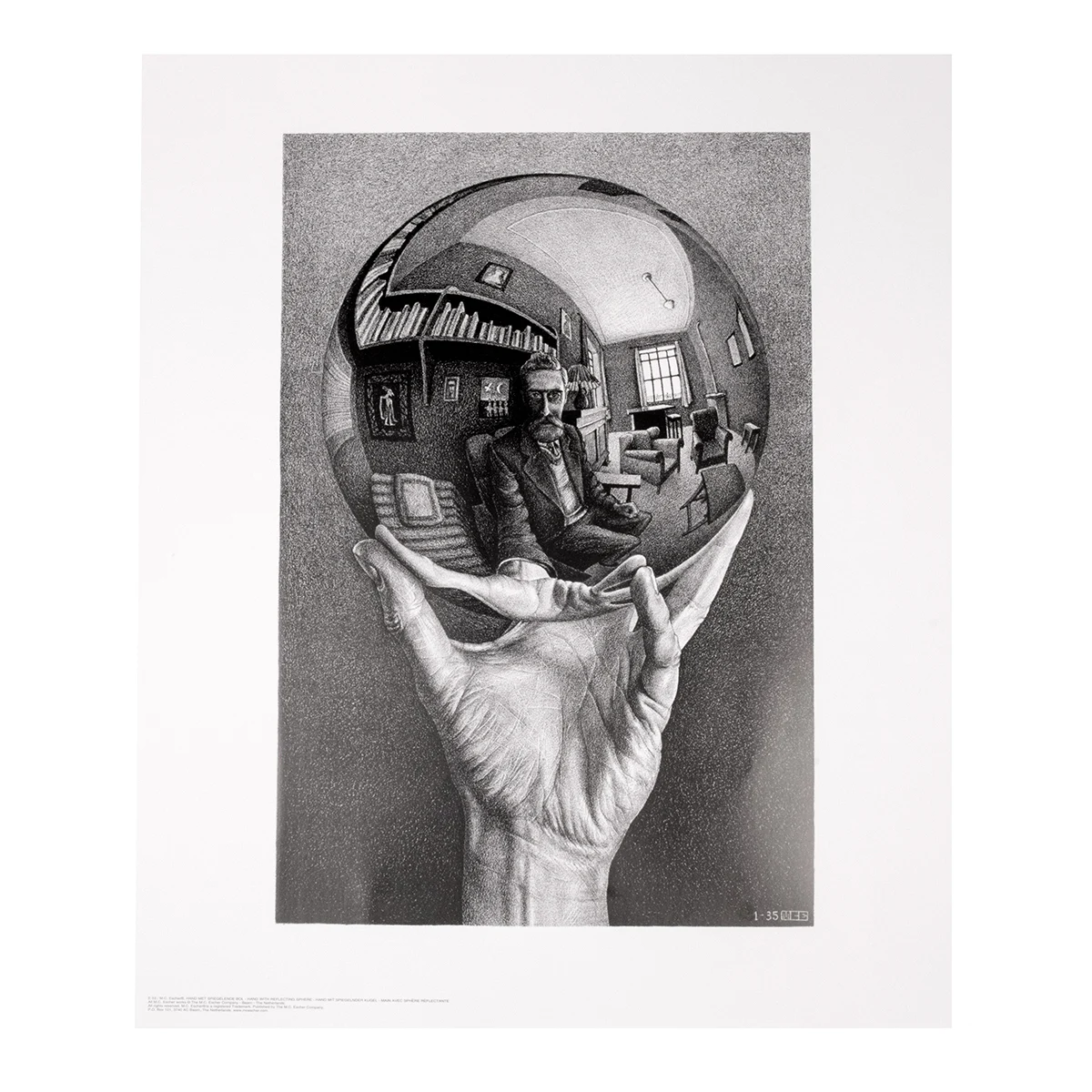 POSTER LARGE HAND WITH REFLECTING SPHERE BL/W